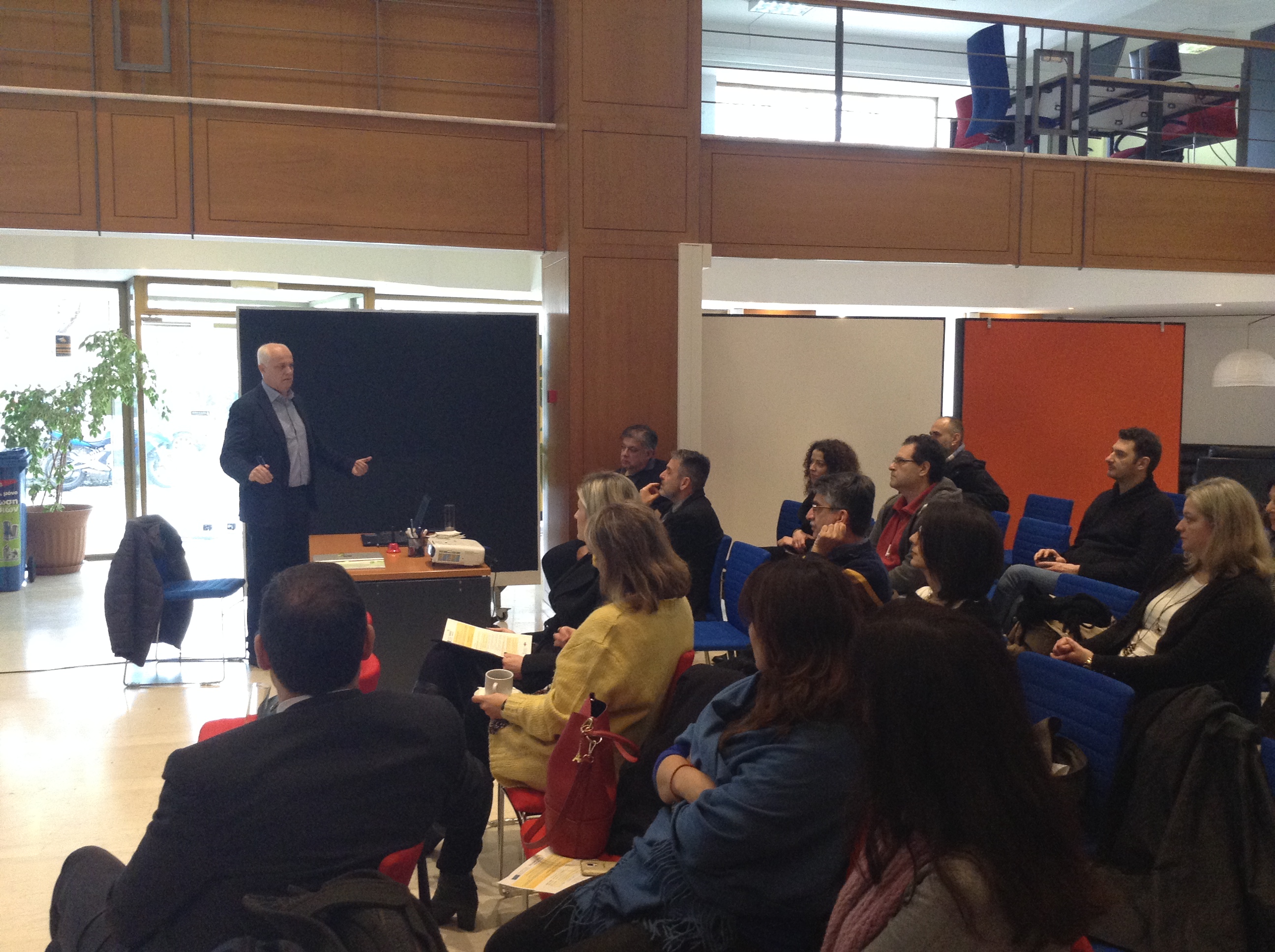 Στη συνάντηση παρουσιάστηκαν από τους εκπροσώπους του Περιφερειακού Ταμείου Ανάπτυξης Κεντρικής Μακεδονίας, κ. Κωνσταντίνο Τερτιβανίδη και κ. Ιωάννη Σπάνδο, και της ΑΝΑΤΟΛΙΚΗ ΑΕ, κα Βασιλική Παπαδοπούλου, τέσσερις επιλεγμένες καλές πρακτικές από την τέταρτη διαπεριφερειακή συνάντηση των εταίρων του έργου που πραγματοποιήθηκε τον Νοέμβριο του 2018 στην πόλη του Άμστερνταμ. Ακολούθησε συζήτηση με τα μέλη της Τοπικής Ομάδας Στήριξης για τα χαρακτηριστικά αυτών των καλών πρακτικών και την εφαρμοσιμότητα τους σε τοπικό και εθνικό επίπεδο.