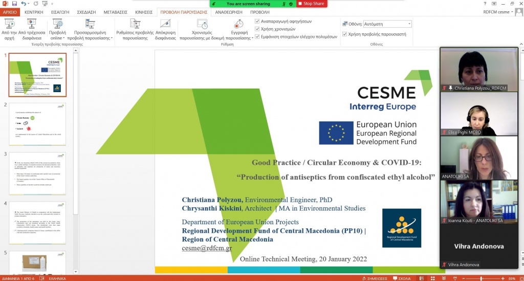 Οι συνέπειες της πανδημίας στις Μικρομεσαίες Επιχειρήσεις καθώς και οι καλές πρακτικές ανάκαμψής τους μέσω της κυκλικής οικονομίας βρέθηκαν στο επίκεντρο της διαδικτυακής τεχνικής συνάντησης των εταίρων του έργου “CESME+, Κυκλική Οικονομία για Μικρές και Μεσαίες Επιχειρήσεις / Circular Economy for SMEs”, στην οποία συμμετείχαν το Περιφερειακό Ταμείο Ανάπτυξης Κεντρικής Μακεδονίας για λογαριασμό της Περιφέρειας Κεντρικής Μακεδονίας και η ΑΝΑΤΟΛΙΚΗ Α.Ε. (επικεφαλής εταίρος).