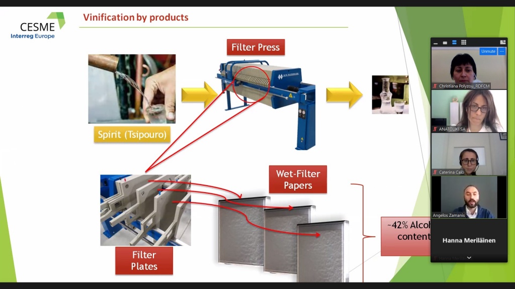 Στο πλαίσιο της συνάντησης, οι εκπρόσωποι του Περιφερειακού Ταμείου Ανάπτυξης Κεντρικής Μακεδονίας παρουσίασαν την πρωτοβουλία της παραγωγής δωρεάν αντισηπτικού διαλύματος από τον στρατό και τις βιομηχανίες φαρμάκων, με τη χρήση κατασχεμένης αιθυλικής αλκοόλης. Στη συνέχεια, έπειτα από πρόσκληση του Περιφερειακού Ταμείου Ανάπτυξης Κεντρικής Μακεδονίας, ο κ. Άγγελος Ζαμάνης, γενικός διευθυντής του οινοποιείου “Domaine Agrovision”, παρουσίασε την πρακτική που ανέπτυξε η συγκεκριμένη επιχείρηση, με την αξιοποίηση παραπροϊόντων οινοποιίας για τη δημιουργία καθαριστικών επιφανειών.