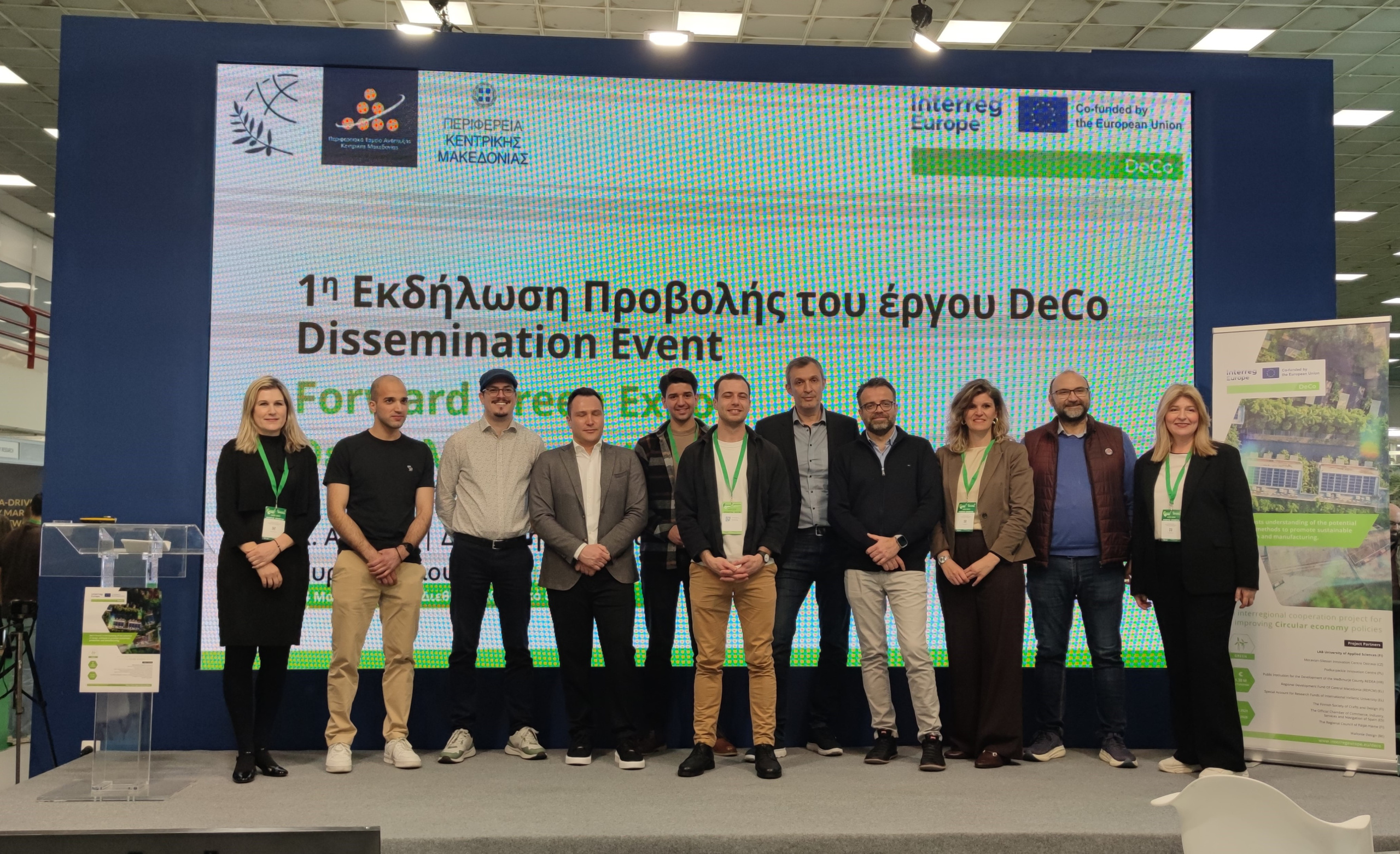 Εκπρόσωποι φορέων της ακαδημαϊκής κοινότητας, της δημόσιας διοίκησης και του επιχειρηματικού κόσμου, καθώς και πολλοί φοιτητές συμμετείχαν στην εκδήλωση προβολής του έργου “DeCo”, που συνδιοργάνωσε η Περιφέρεια Κεντρικής Μακεδονίας και το Περιφερειακό Ταμείο Ανάπτυξης Κ. Μακεδονίας με το Διεθνές Πανεπιστήμιο Ελλάδας, την Παρασκευή 14 Μαρτίου 2025, στο πλαίσιο της διεθνούς έκθεσης για την Κυκλική Οικονομία “Forward Green Expo”, στις εγκαταστάσεις του Διεθνούς Εκθεσιακού και Συνεδριακού Κέντρου Θεσσαλονίκης.